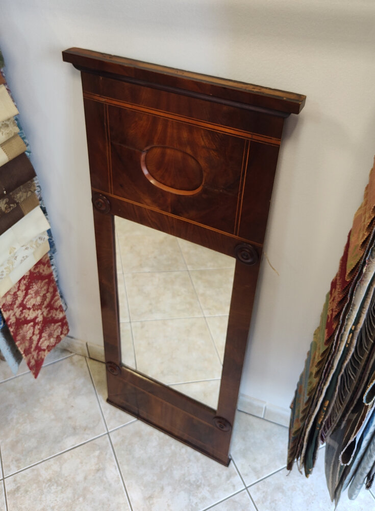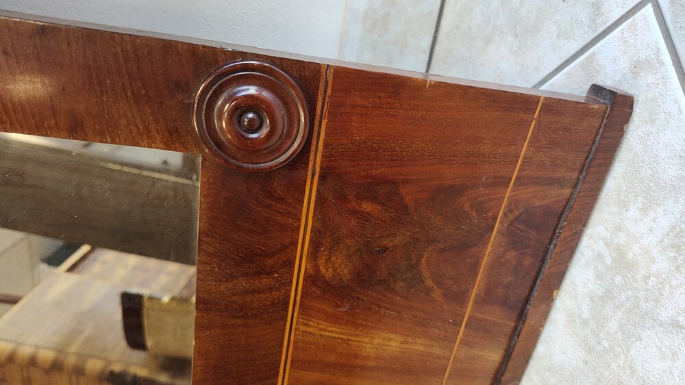 Lustro w stylu biedermeier, fornirowane pięknym mahoniem płomienistym.